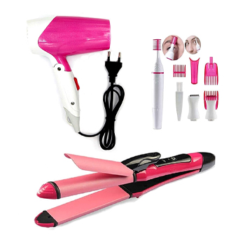 Hair Straightener and Curler, Hair Dryer Foldable and Trimmer For Women Hair Removal Kit Mini Hair Straightener Ceramic Plate Hair Straightener (pink).